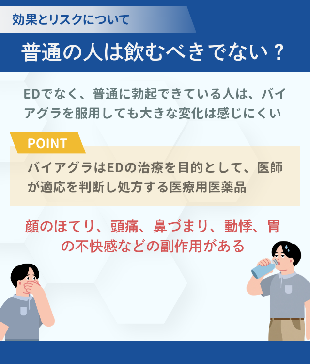 普通の人はバイアグラを飲まないほうがいい?効果とリスクについて