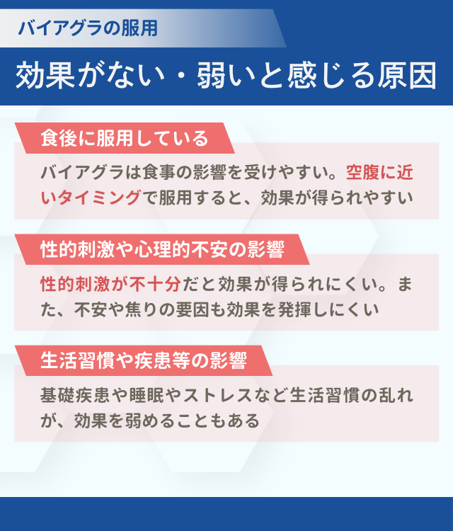 バイアグラの効果がない・弱いと感じる原因